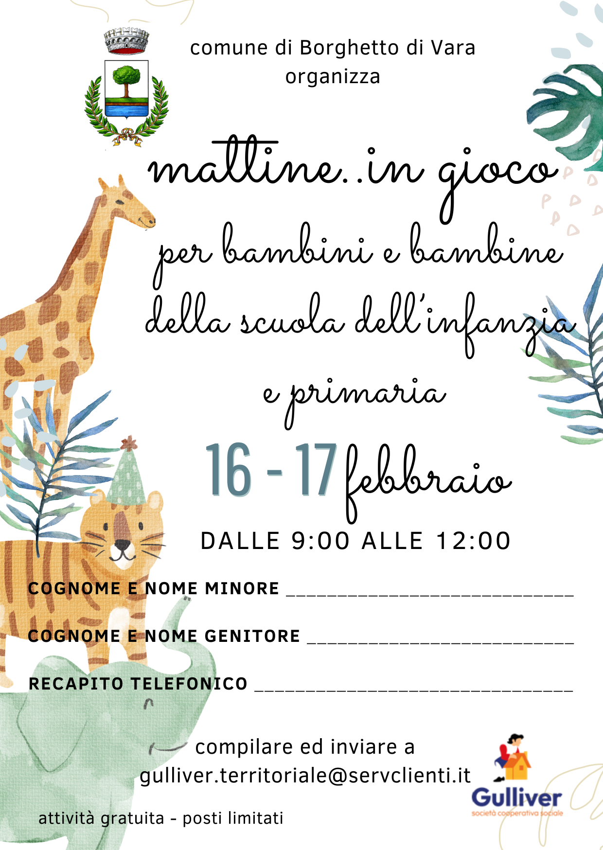 Giornate ludico ricreative destinate ai bambini frequentanti la Scuola Primaria e dell Infanzia nelle giornate di Lunedì 16 e Martedì 17 febbraio.